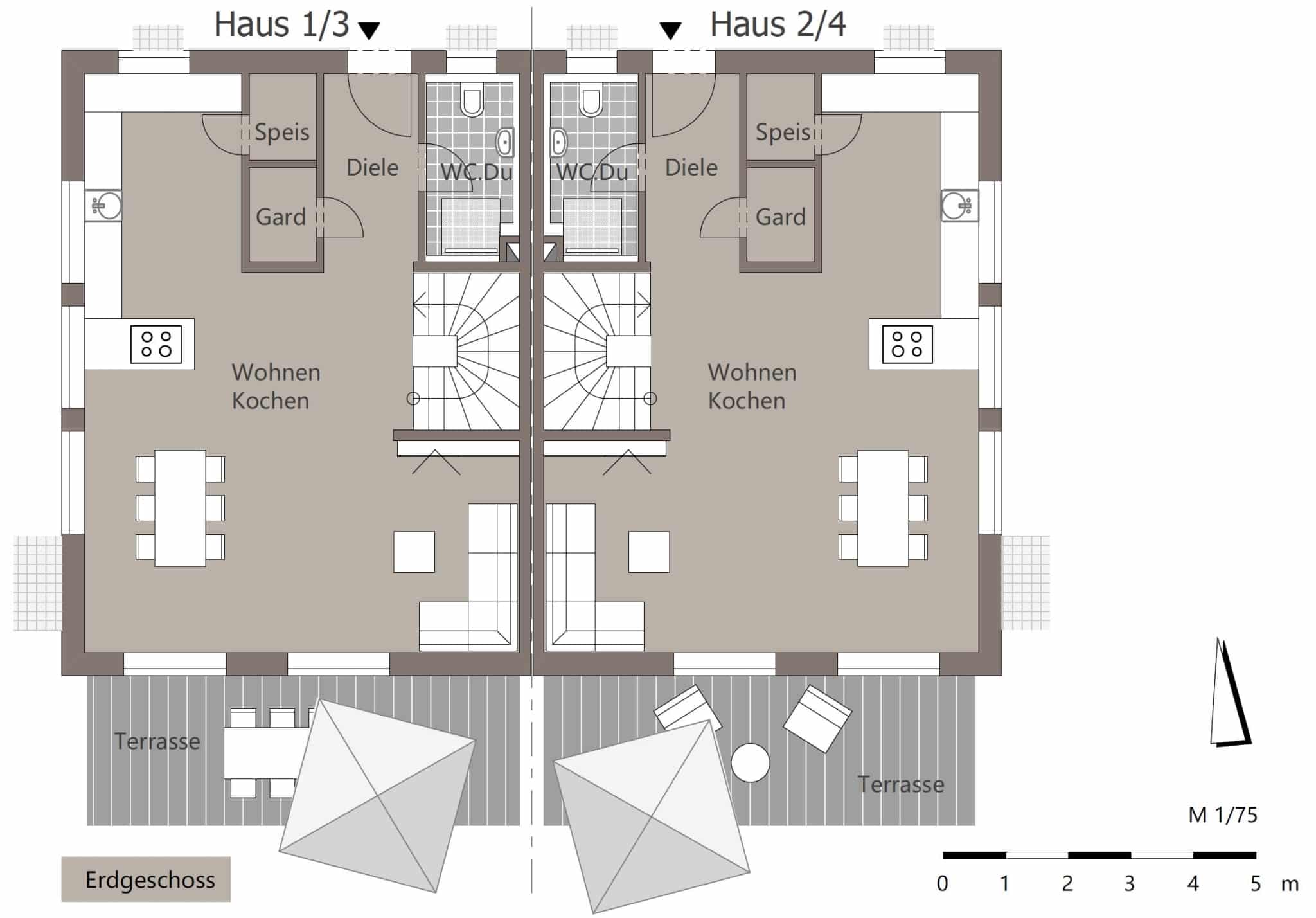 Doppelhaushälfte 4: Im Eingangsbereich Ihres zukünftigen Hauses befindet sich ein separates Gäste WC mit Dusche und eine Garderobe. Der lichtdurchflutete Wohn-Essbereich im Erdgeschoss mit ca. 45 m² bietet Ihnen und Ihrer Familie ausreichend Platz zum Kochen, spielen und für gemeinsame Stunden. Über die Treppe gelangen Sie in den ersten Stock und finden drei gut geschnittene Zimmer (Schlafzimmer, Kinderzimmer oder Büro) mit ca. 13-15 m² und ein Bad mit knapp. 9 m². Möchten Sie weiter in den 2. Stock? Im Dachgeschoss finden sie Ihr Schlafzimmer mit ca. 18 m² und ein zusätzliches Büro mit ca. 10 m² und angrenzendem Bad mit ca. 6 m². Zu guter letzt, sollten wir aber noch den gut aufgeteilten Keller besichtigen. Der Hobbyraum mit ca. 29 m² bietet genug Platz für tolle Ideen. Ein Hauswirtschafts- bzw. Technik und Vorratsraum bieten viel Stauraum und sorgen für Ordnung im unteren Bereich. Eine Doppelgarage ist im Preis inbegriffen. Geheizt wird über eine moderne Luft-Wasser Wärmepumpe. Ausstattung der Doppelhaushälfte gemäß Baubeschreibung. Keine Provision für den Käufer. Ab Anfang 2022 baut die Prada Bau GmbH zwei Doppelhäuser mit Doppelgarage auf dem schönen Grundstück in der Hauptstr 30. Das Unternehmen hat in den letzten Jahren einige vergleichbare Projekte im Münchner Westen erfolgreich fertiggestellt. Zum Verkauf stehen 4 Doppelhaushälften. Alle Häuser werden nach aktuellen Vorgaben und Regeln der Technik geplant und gebaut. Die wunderbar gezeichneten Grundrisse der Architektin aus München, sind gut durchdacht. Wohnraum ist hier spürbar. Mit sechs Zimmern und ca. 174 m² Wohnfläche und einer gesamten Wohn- und Nutzfläche von ca. 223 m² ist viel Platz zum Leben und Wohnen. Die Versorgung der Wohneinheiten wird über eine Luft-Wasser-Wärmepumpe gewährleistet. Der Keller bietet viel Stauraum mit großem Hobbyraum. Garten und Terrasse sind nach Süden ausgerichtet. Das Bauvorhaben erreicht den KFW 55 Standard. Die Bauweise wird in massiver Ziegelbauweise erfolgen. Das Angebot ist vorbehaltlich der Genehmigung des Bauvorhabens.